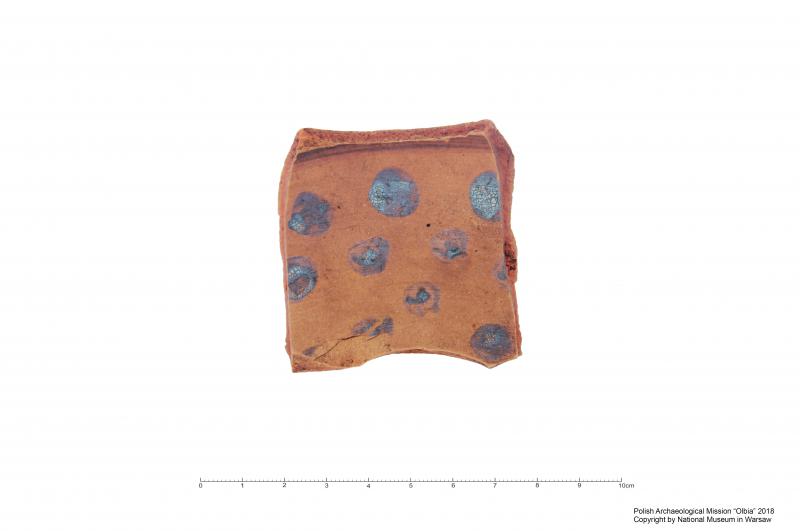 Fragment dna talerza czerwonopolewanego z ornamentem/Fragment of a bottom of a red slip plate with ornament