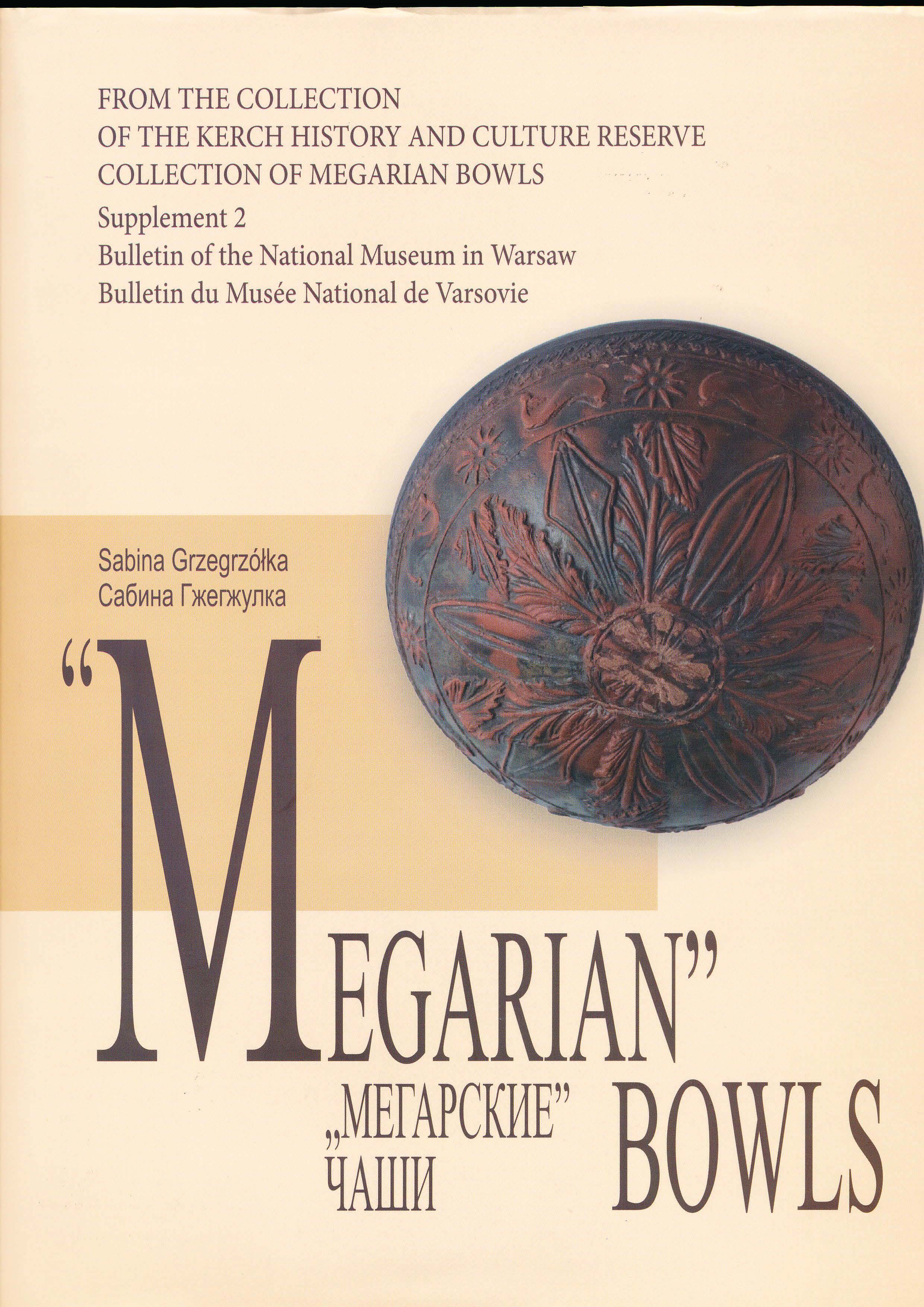 Sabina Grzegrzółka, „Megarian” Bowls from the Collection of the Kerch History and Culture Reserve, Part 1, The National Museum in Warsaw, Wydawnictwo DiG, Warsaw 2010. Publication is a part of the series: „From the Collection of the Kerch History and Culture Reserve. Collection of Megarian Bowls”, Vol. 1 and as a Supplement 2, Bulletin of The National Museum in Warsaw (Bilingua: English-Russian)