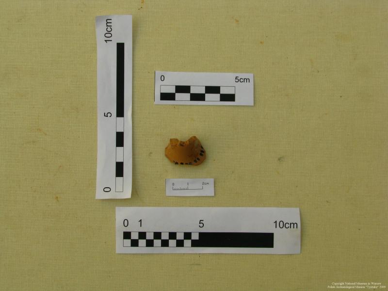 na zachowanym fragmencie u dołu umieszczono pojedynczy rząd kropek wykonanych po