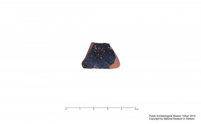 Fragment brzuśca naczynia czarnopokostowanego z białą polewą/Fragment of a body of a black-glazed vessel with white glaze
