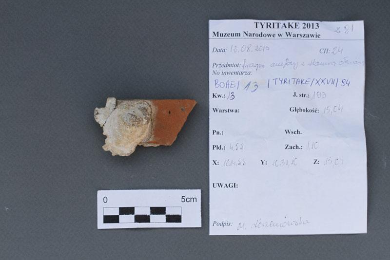 Fragment amfory z klamrą ołowianą/Amphora fragment with leaden brace